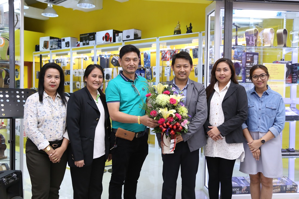 คุณชัยวัฒน์ เอมวงศ์ ผู้บริหารศูนย์การค้าฟอร์จูนทาวน์ มอบกระเช้าดอกไม้ร่วมแสดงความยินดีแก่ คุณทรงยศ ใจวงษ์ กรรมการบริหาร บริษัท เอสแอนด์พี มัลติมีเดีย สปีกเกอร์ จำกัด เนื่องในโอกาสเปิดร้าน PS GADGET ศูนย์รวมอุปกรณ์สตูดิโอร้องเพลงครบวงจร อาทิ ลำโพง Multimedia Speaker, ลำโพง Portable Speaker, ไมค์คอนเดนเซอร์, หูฟัง Headphone และ Gadget แบรนด์ชั้นนำ หลากหลายรุ่นและราคา ที่ให้เราสามารถเลือกเพื่อสรรสร้างสตูดิโอร้องเพลงผลิตผลงานของตัวเองได้ในราคาและคุณภาพที่พอใจ นำผลงานอัปโหลด Youtube แบบ Professional ได้ในราคาประหยัด พร้อมให้ทดลองอุปกรณ์ อัดเสียง และแนะนำวิธีใช้งานด้วยทีมงานคุณภาพ เรียกได้ว่ามาร้านเดียวคุณมีสตูดิโอของตนเองได้เลย