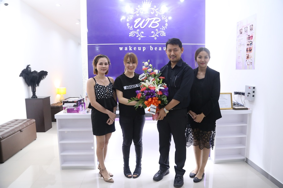 คุณชัยวัฒน์ เอมวงศ์ ผู้บริหารศูนย์การค้าฟอร์จูนทาวน์ มอบกระเช้าดอกไม้แสดงความยินดีแก่ คุณมลวิภา อินทรรังษี เนื่องในโอกาสเปิดร้าน Wakeup Beauty ให้บริการเสริมความหล่อ เติมความสวย ให้กับหนุ่ม สาว ภายในร้านมีบริการหลากหลาย ใส่ใจทุกรายละเอียด อาทิ เพ้นท์คิ้วสไลด์, เพ้นท์คิ้ว 3 มิติ, เพ้นท์คิ้ว 6 มิติ, เพ้นท์ขอบตาบน – ล่าง, เพ้นท์ปากอมชมพู, ต่อขนตา, สปาหน้า, แว็กซ์ขน ฯลฯ ด้วยการบริการที่คำนึงถึงความ สะอาด ปลอดภัย เลือกใช้อุปกรณ์ที่ได้มาตรฐาน และได้รับการันตีความสามารถจาก Bangkok Beauty Academy อีกด้วย