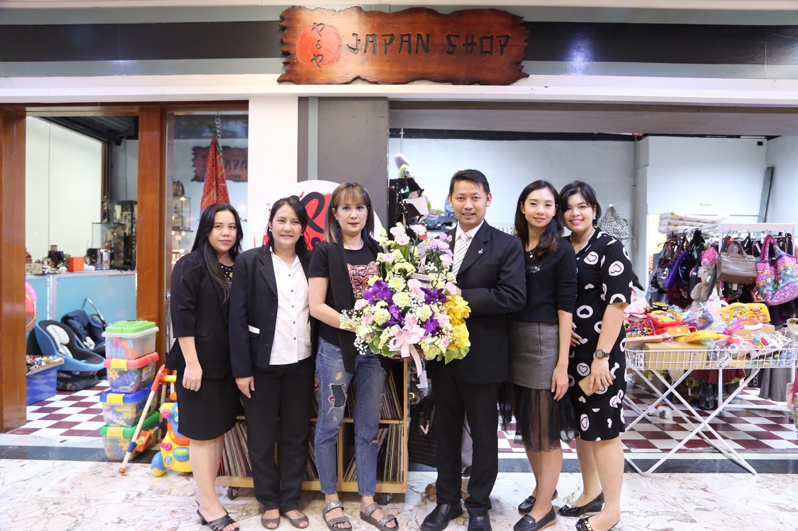 คุณชัยวัฒน์ เอมวงศ์ ผู้ช่วยกรรมการผู้จัดการด้านบริหารศูนย์การค้าและสำนักงาน บริษัท ซี.พี.แลนด์ จำกัด (มหาชน) ผู้บริหารศูนย์การค้าฟอร์จูนทาวน์ มอบกระเช้าดอกไม้แสดงความยินดีแก่ คุณจิราภรณ์ จุลวรรณโณ ตัวแทนร้าน JAPAN SHOP เนื่องในโอกาสเปิดร้านใหม่