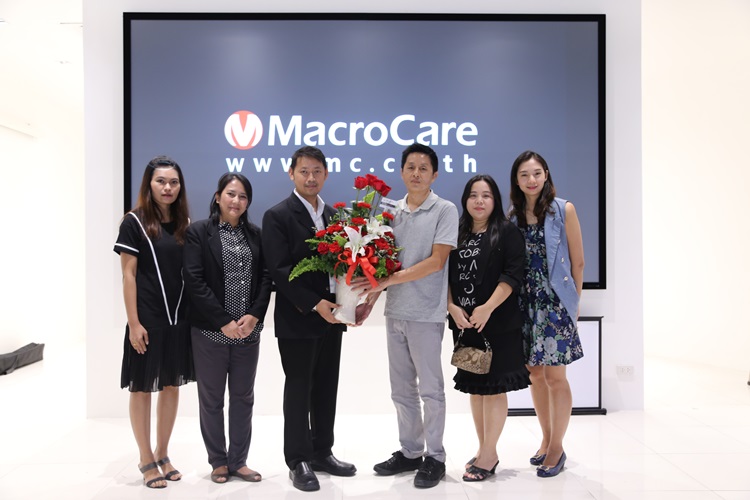 คุณชัยวัฒน์ เอมวงศ์ ผู้ช่วยกรรมการผู้จัดการด้านบริหารศูนย์การค้าและสำนักงาน บริษัท ซี.พี.แลนด์ จำกัด (มหาชน) ผู้บริหารศูนย์การค้าฟอร์จูนทาวน์ มอบกระเช้าดอกไม้แสดงความยินดีแก่ คุณวิฑูรย์ บูรณภิญโญ ตัวแทนบริษัท มาโครแคร์ จำกัด เนื่องในโอกาสขยายร้าน