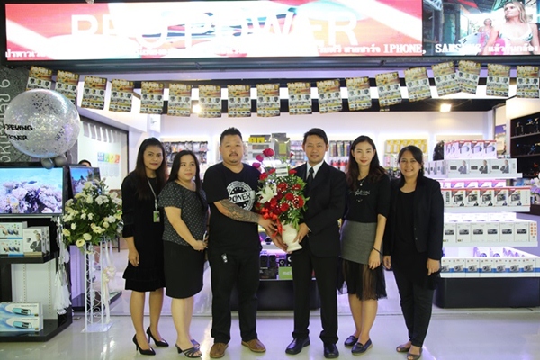 คุณชัยวัฒน์ เอมวงศ์ ผู้ช่วยกรรมการผู้จัดการด้านบริหารศูนย์การค้าและสำนักงาน บริษัท ซี.พี.แลนด์ จำกัด (มหาชน) ตัวแทนผู้บริหารศูนย์การค้าฟอร์จูนทาวน์ ได้มอบกระเช้าดอกไม้แสดงความยินดีแก่ คุณศิวนาถ เณรจาที เนื่องในโอกาสเปิดร้านใหม่ "Pro Power"