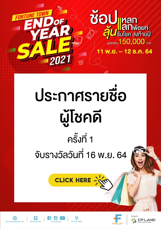 ประกาศรายชื่อผู้โชคดี งาน Fortune Town End of Year Sale 2021